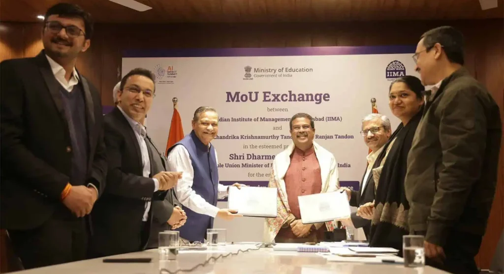 The establishment of the School was formalised through an MoU Exchange Ceremony held on 29 January 2026 in New Delhi, in the presence of Shri Dharmendra Pradhan, Hon’ble Union Minister of Education, Government of India. The MoU was exchanged between Prof. Bharat Bhasker, Director, IIM Ahmedabad, and Ms Chandrika Krishnamurthy Tandon and Mr Ranjan Tandon, highlighting the national significance of building responsible and impactful AI institutions.